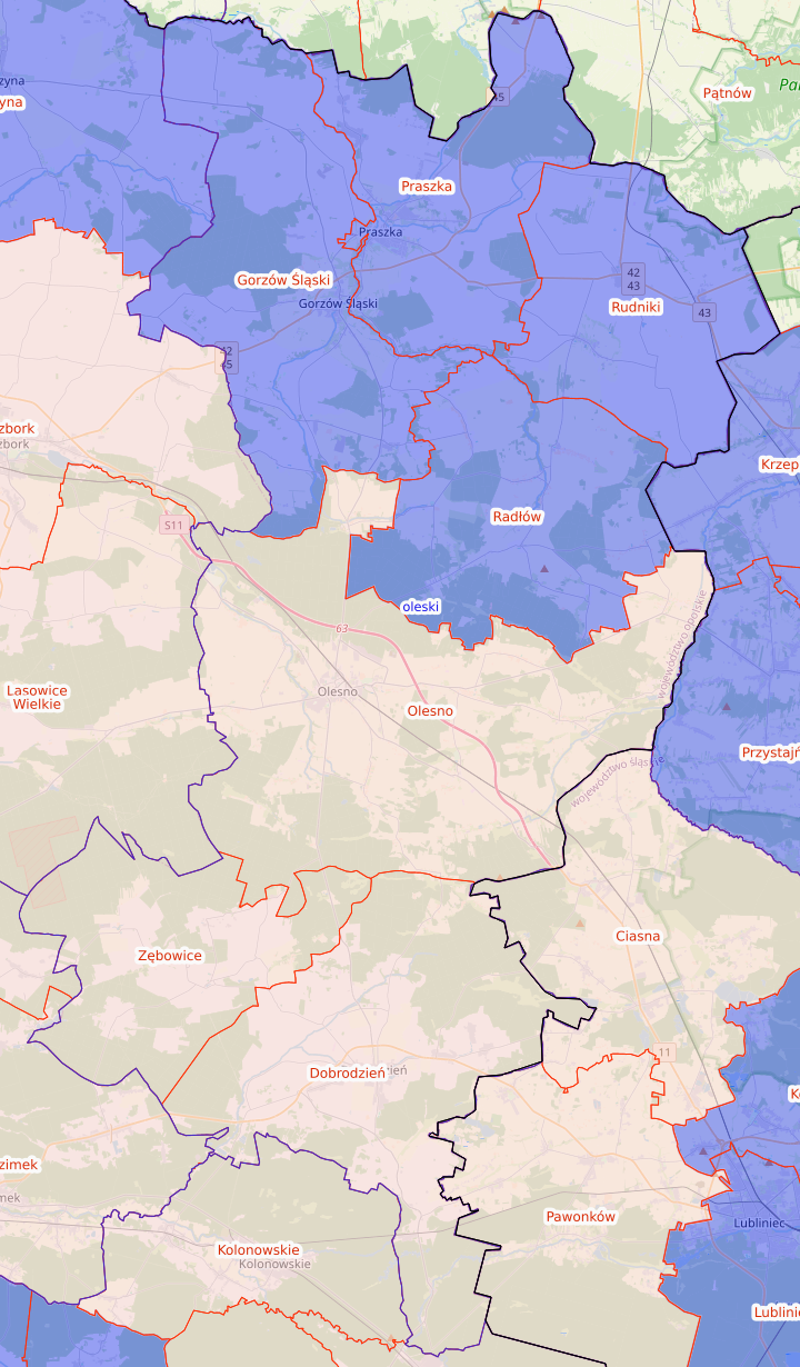 obejmujący: gminę Praszka, Gorzów Śląski, Radłów, Olesno, Radłów, Dobrodzień i Zębowice